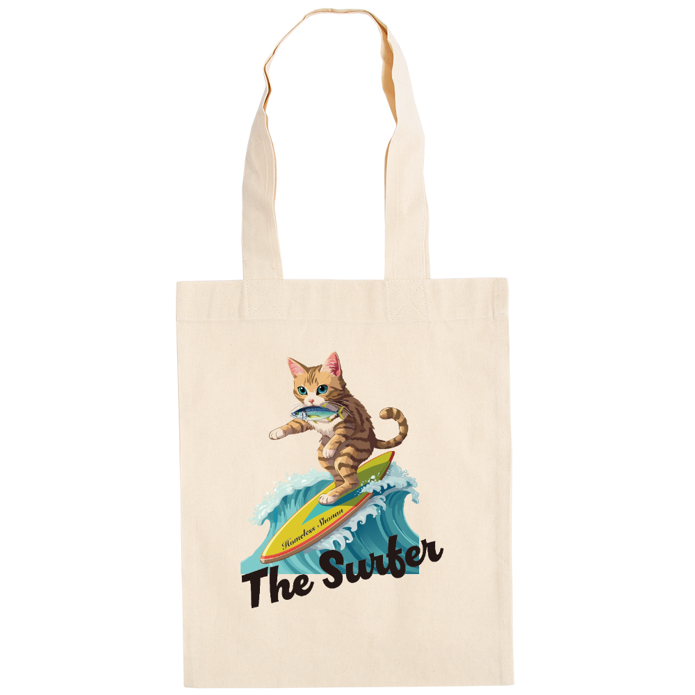 「湘南 SURF CAT エコトート The Surfer お魚咥えたドラ猫」は、ビーチの風を感じながら、あなたの日常に楽しい彩りを加えてくれるアイテムです。環境に優しい素材を使用していて、しっかりした作りにより長持ちするので、サーフィンを愛するあなたの特別なコレクションにぴったりです。